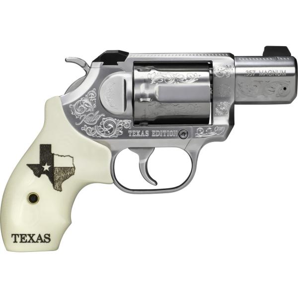 The Kimber K6s DASA (Texas Edition) is a unique, beautiful, powerful, and rugged revolver. It comes chambered in .357 Mag with a 2 inch barrel and 6 round capacity. Features include a timeless smooth satin finish, vintage American Western scrollwork, serrated backstrap, and more. Get the best revolver deals online at GrabAGun!
