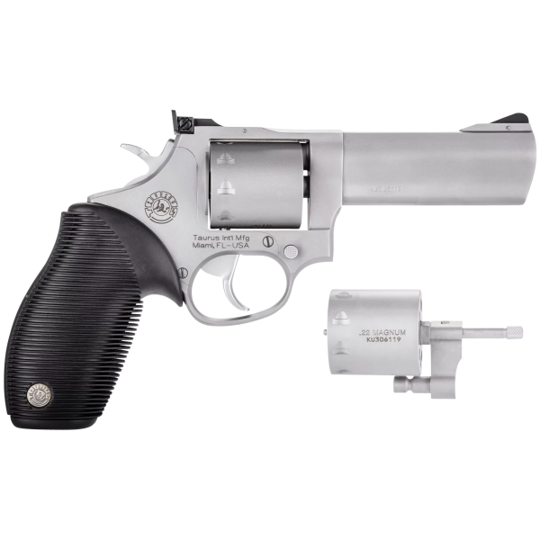 The Taurus 992 Tracker delivers good performance and accuracy in a lightweight and reliable revolver design. It comes chambered in .22 LR and .22 Mag with a 4 inch barrel. Features include a rubber grip, a fixed front sight, an adjustable rear sight, and a 9 round capacity.